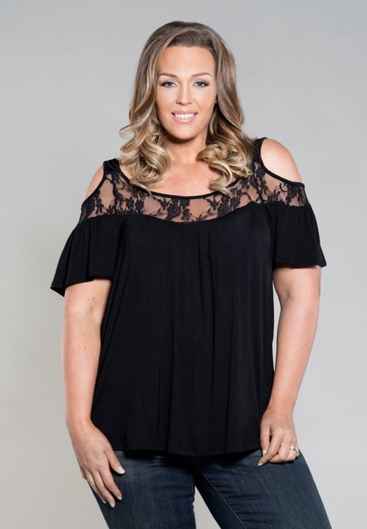 Damesblouse met kant en blootgestelde mouwen