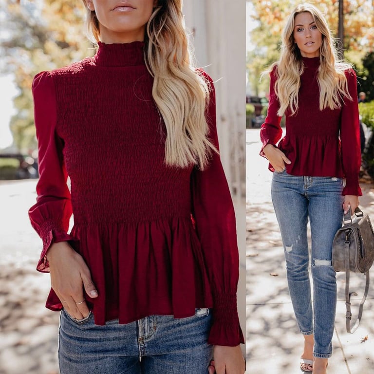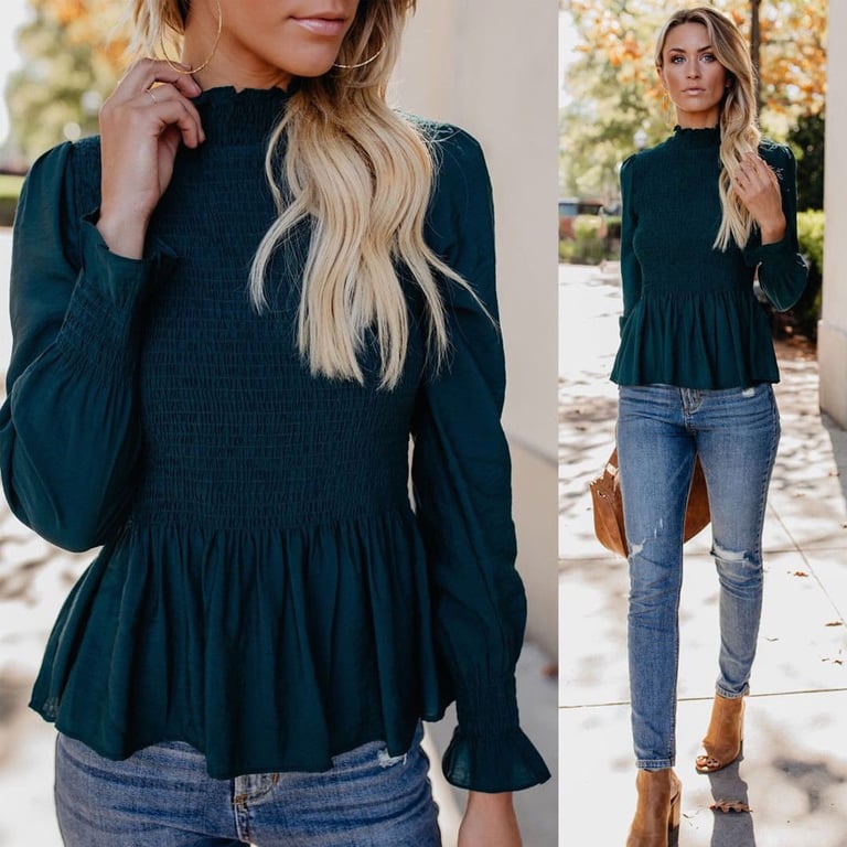 Damesblouse met plooien en ruffles. Elegante snit. Verkrijgbaar in 4 kleuren.