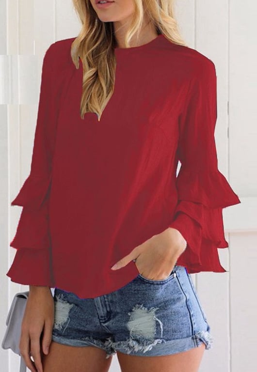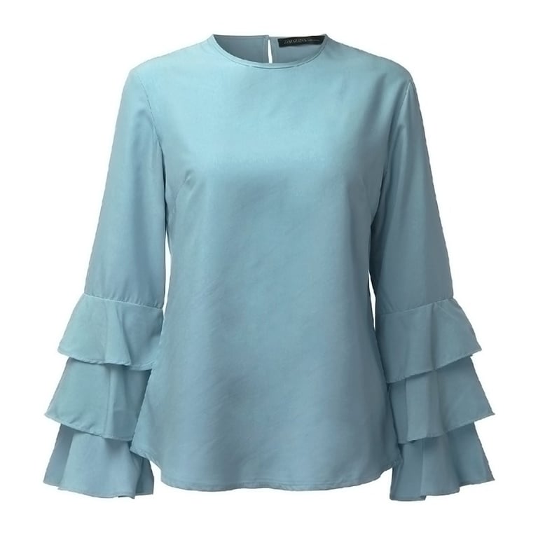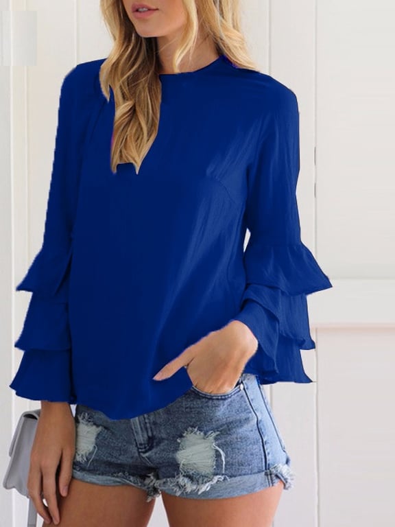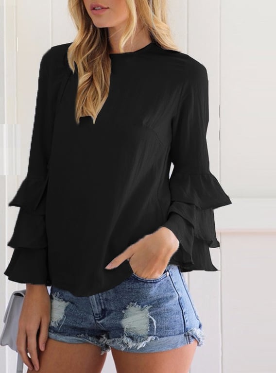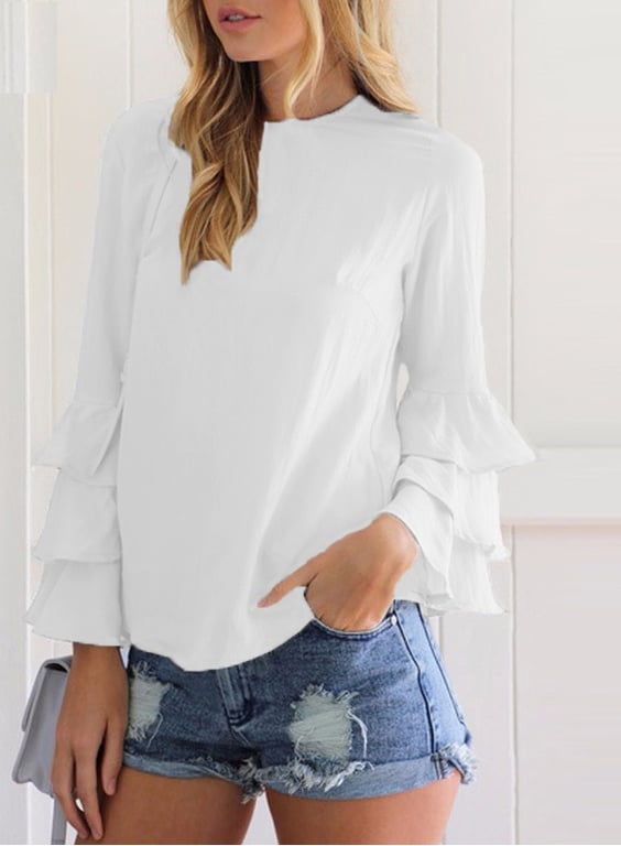 Moderne damesblouse met lange mouwen en ruffles is zeer mooi en past bij alles.