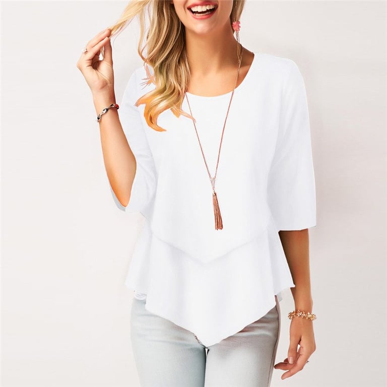 Damesblouse met 3/4 mouwen en ronde hals. Vrije, elegante snit. Ideaal voor de lente en zomer.