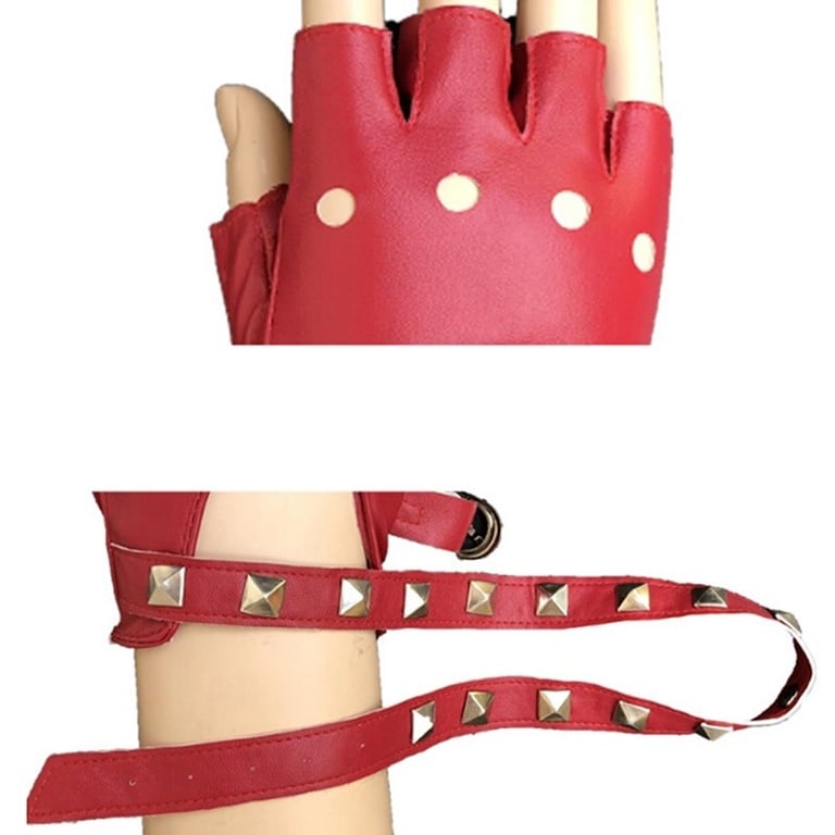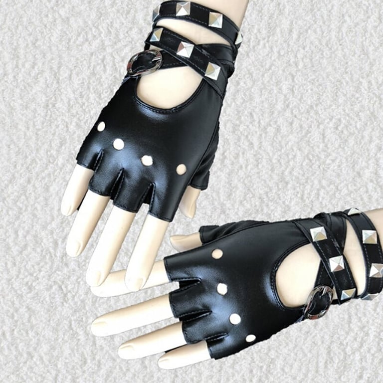 Extravagante damesvingerloze handschoenen van kunstleer versierd met studs.