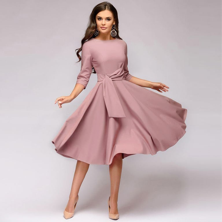 Hoogst elegante jurk met een lange rok en een comfortabele snit.