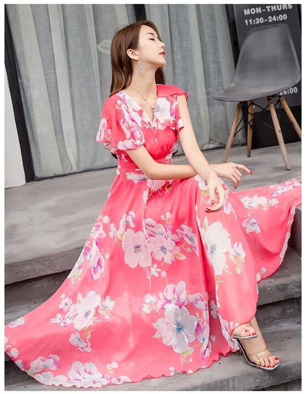 Dames zomerjurk met een print van grote bloemen.