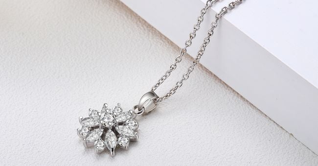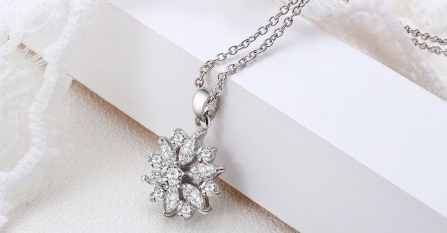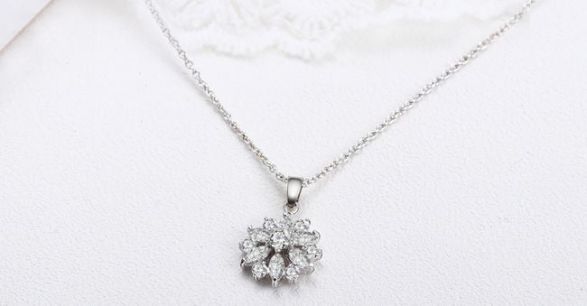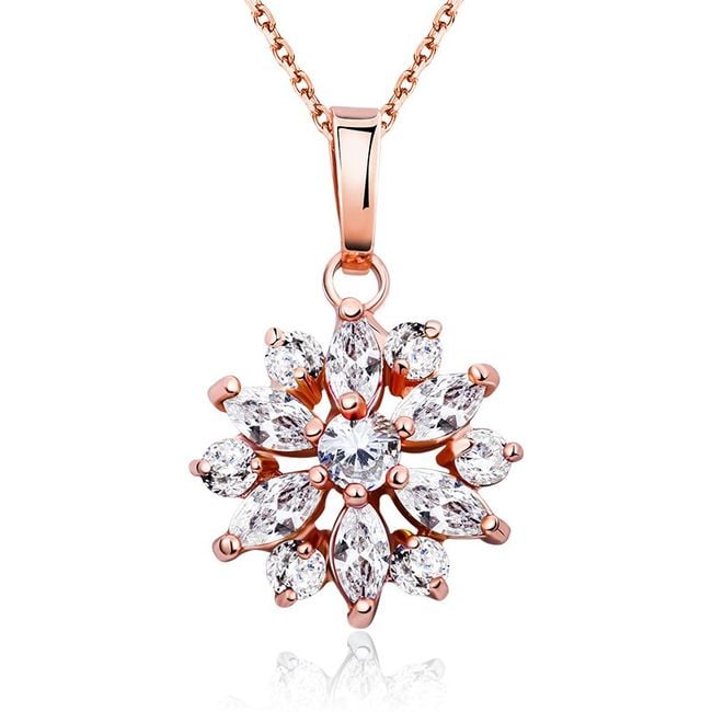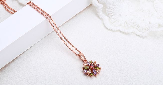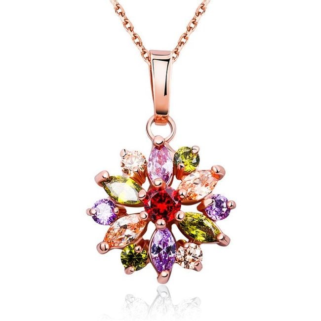 Elegante ketting in de vorm van een bloem met kunststenen. Beschikbaar in 3 kleurvarianten.