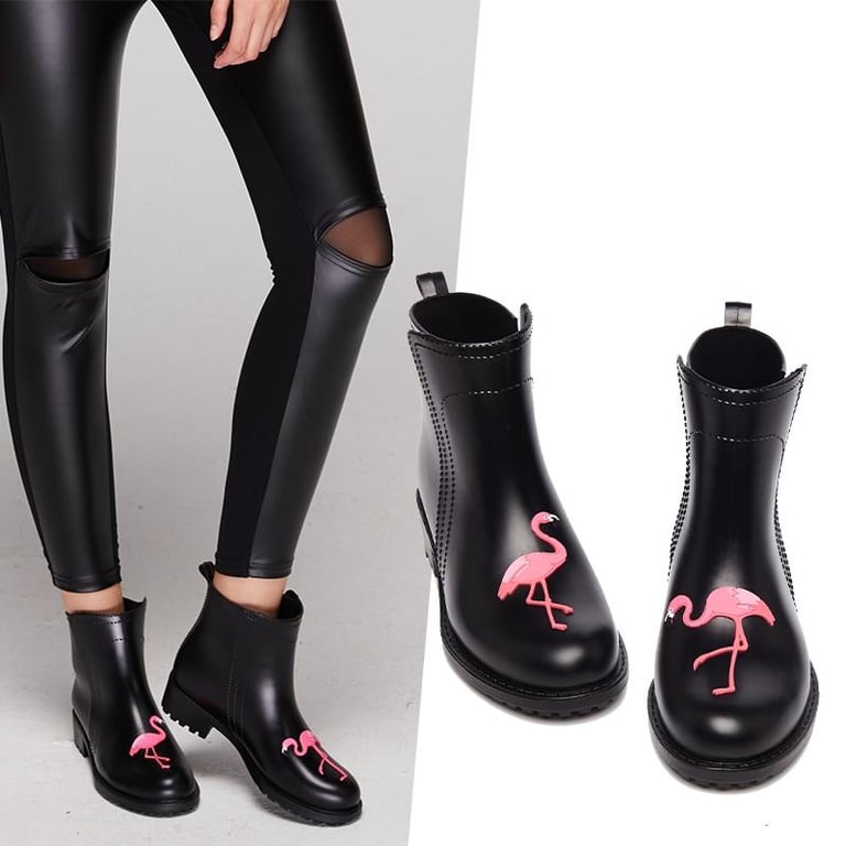 Stijlvolle laarzen met een flamingo in twee kleuren.