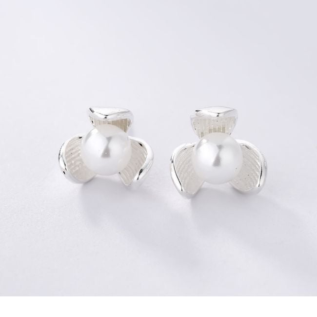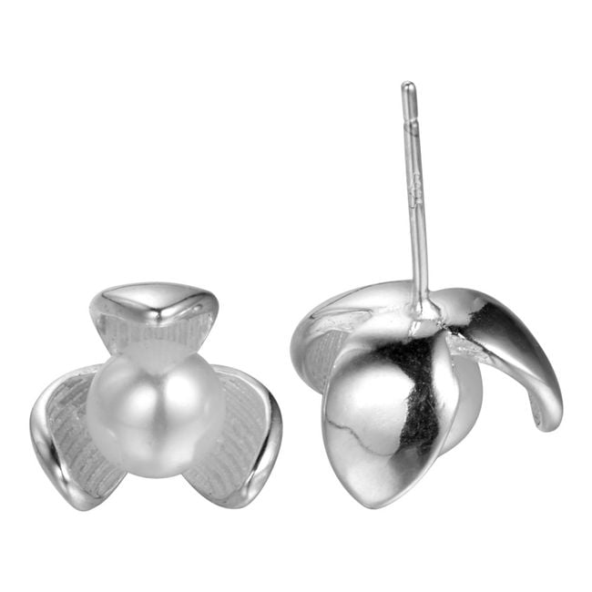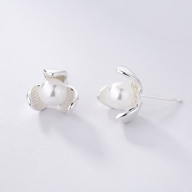 Dames delicate oorbellen in de vorm van klaverbloemen met een kunstparel.