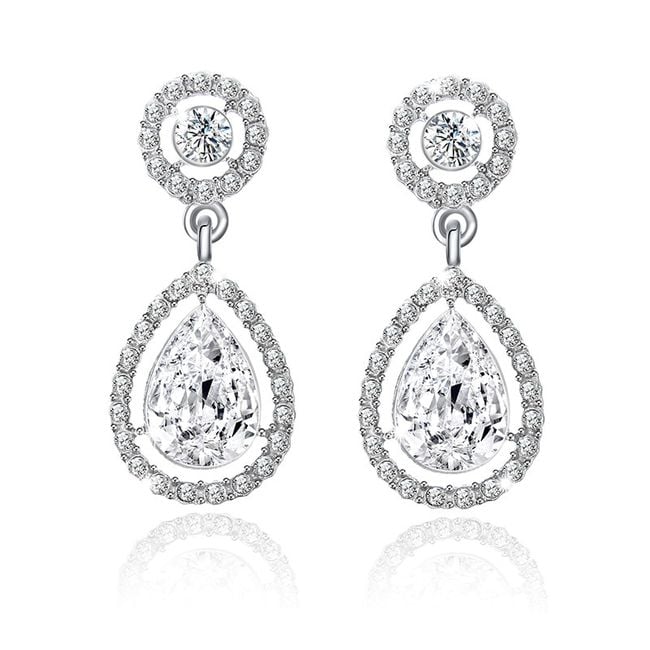 Luxueuze oorbellen van steentjes in de vorm van een druppel.