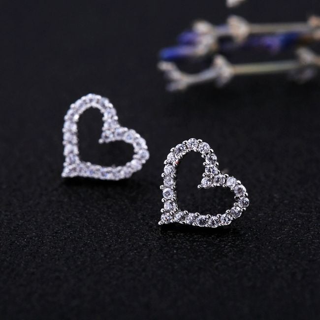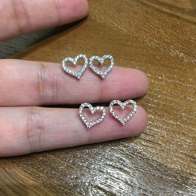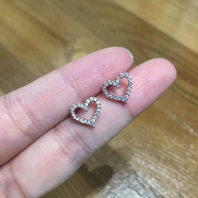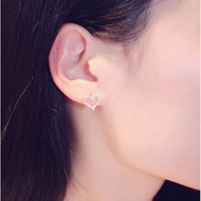 Fijne damesoorbellen in de vorm van hartjes met steentjes.