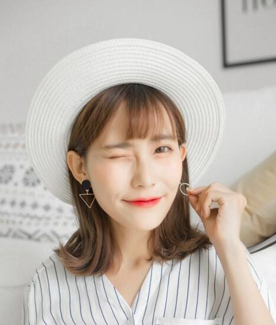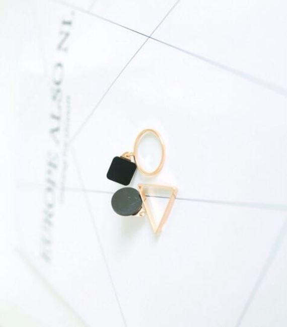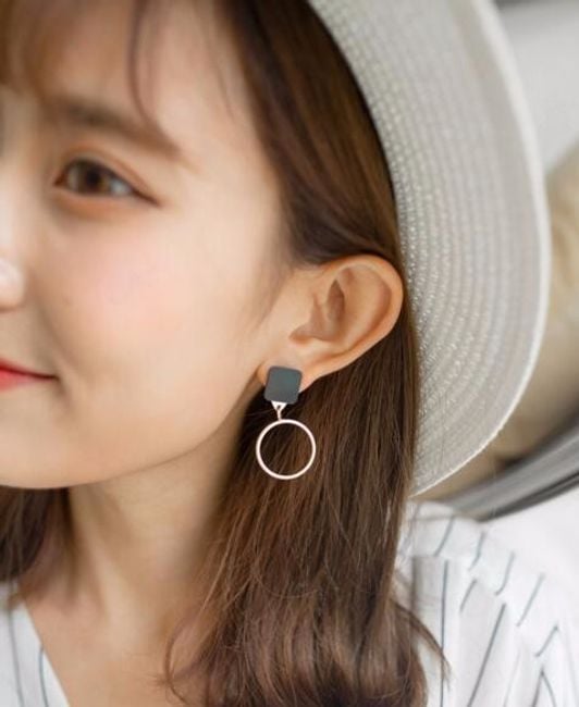 Dames elegante oorbellen zijn versierd met originele geometrische vormen.