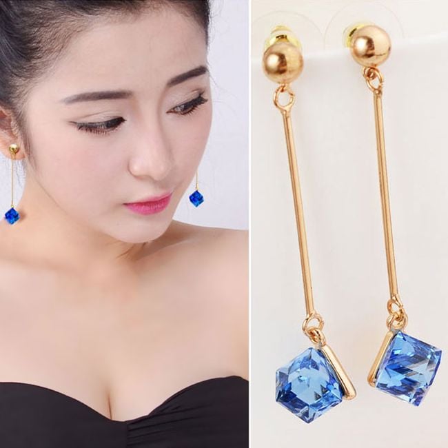 Mooie dames oorbellen met een blokje.