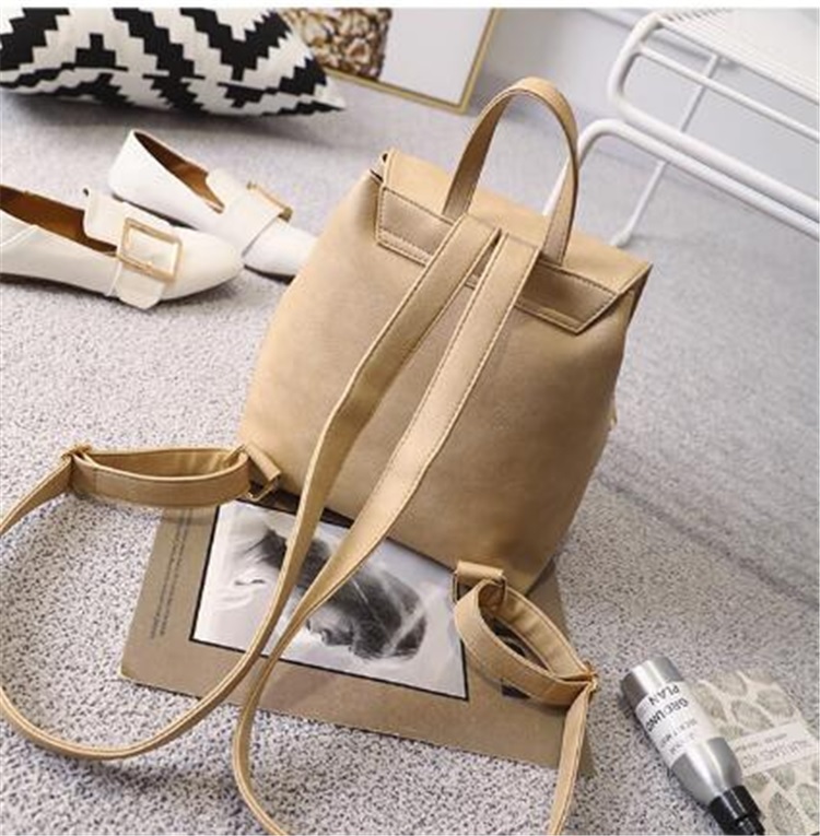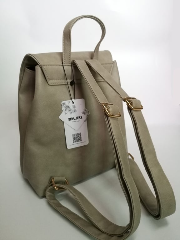 Elegante rugzak met één compartiment, sluitbaar met banden en een metalen drukknoop en klep met twee banden.
