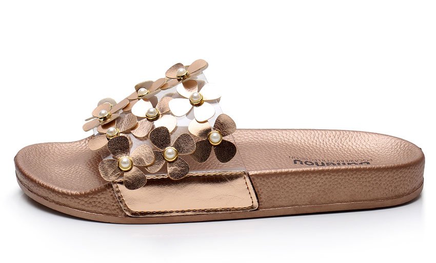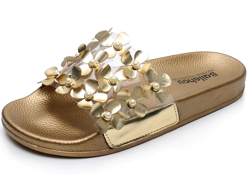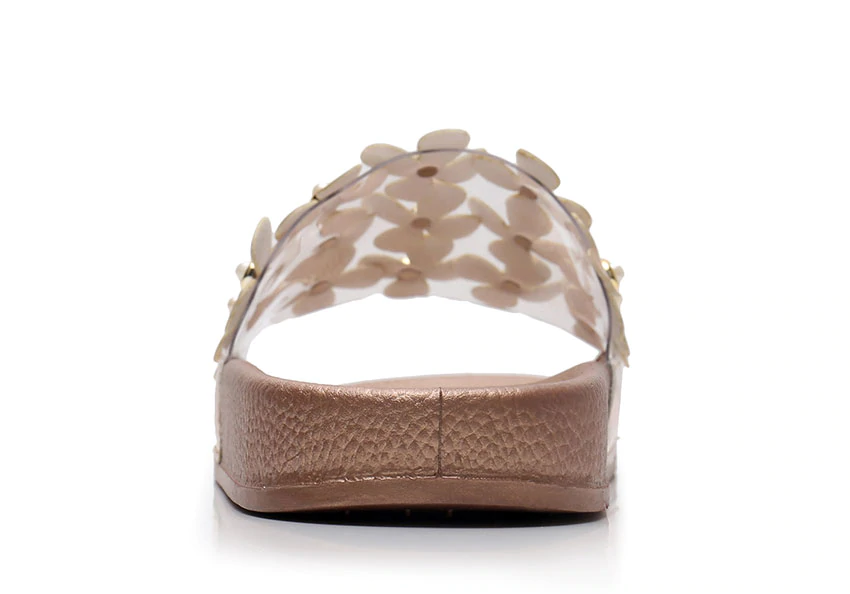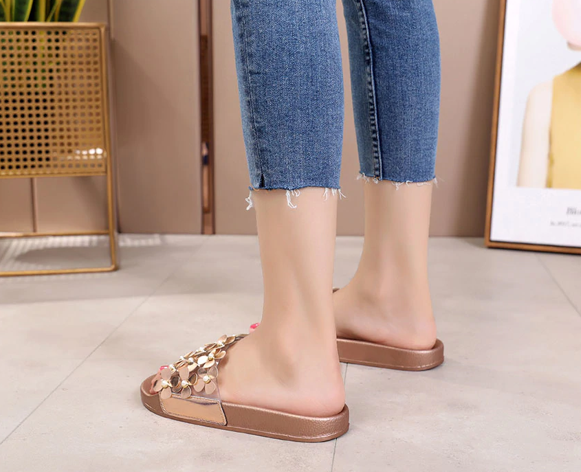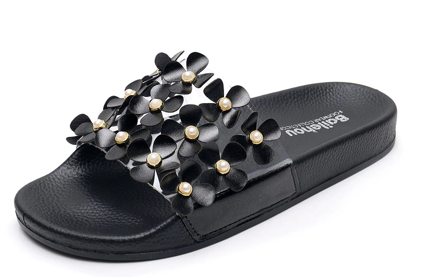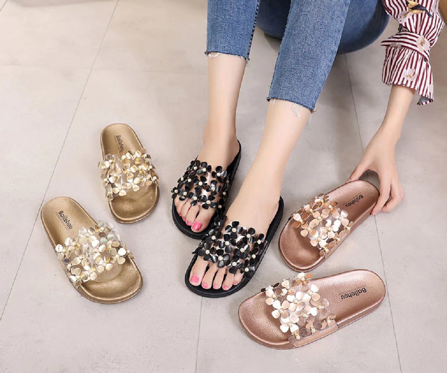 Schaf deze prachtige slippers versierd met bloemen aan voor de zomer of het voorjaar.