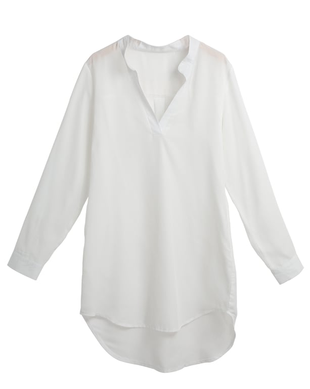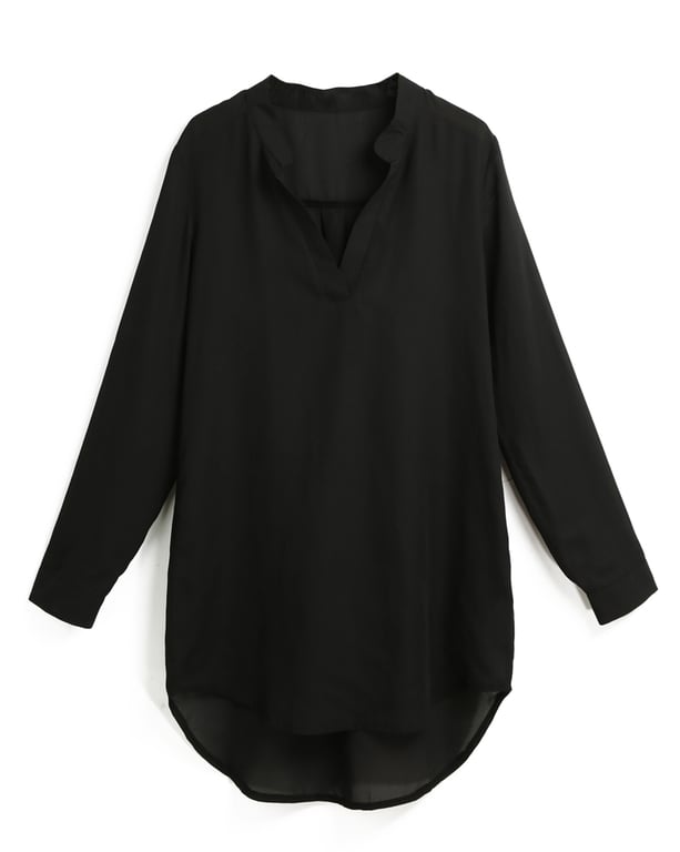 Het heeft lange mouwen die opgerold en vastgezet kunnen worden.