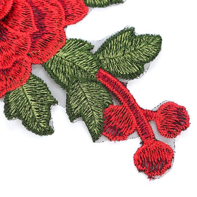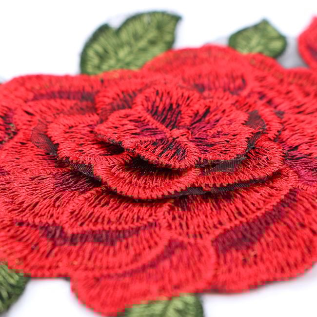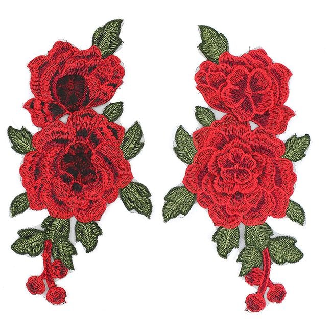 Een paar rode rozen zal geweldig staan, bijvoorbeeld op jeans. Ze kunnen dienen om kleine gaatjes te verbergen of om een saai mode-item op te fleuren.