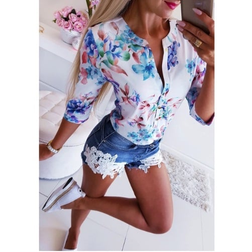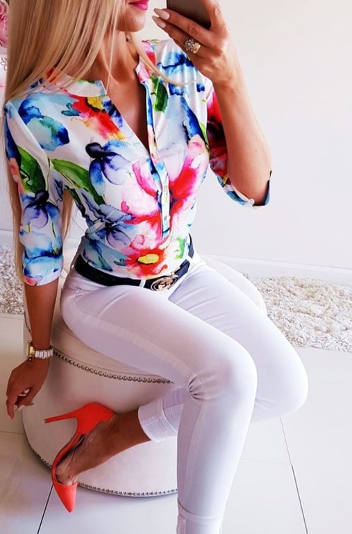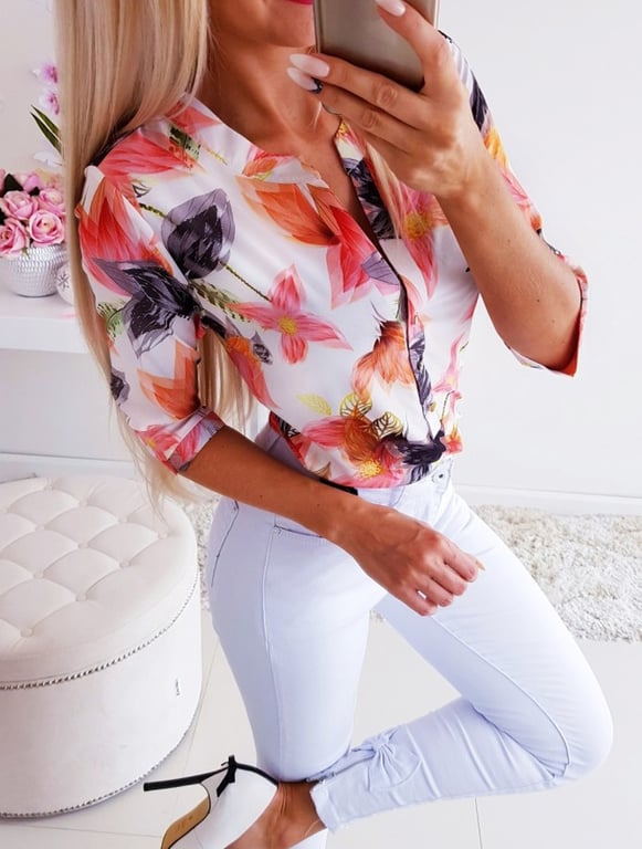 Mooie lente blouse met bloemenprint. De blouse is van een fijne stof, heeft 3/4 mouwen en is ideaal voor dagelijks gebruik of zakelijke afspraken.