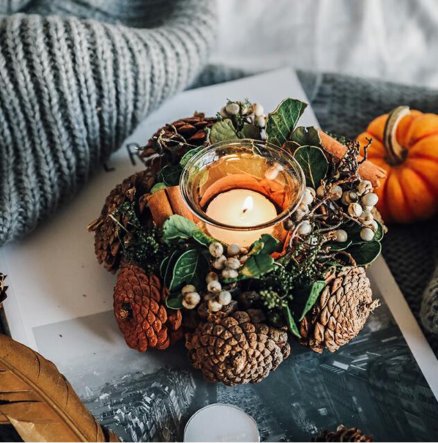 Herfstkaarsenhouder voor op tafel. Kerstkaarsenhouder voor op tafel
