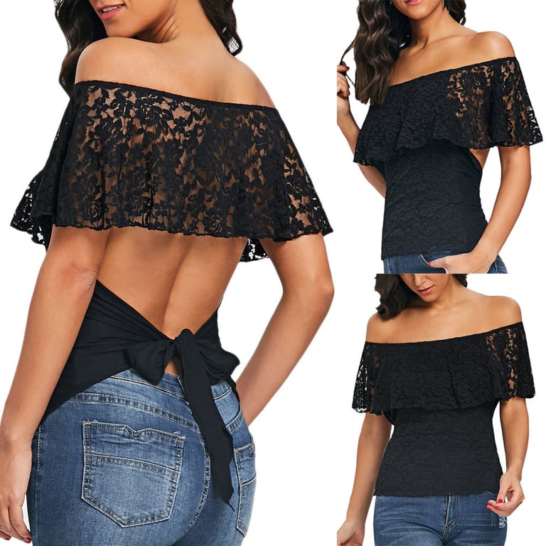Spitzenblouse met blote schouders