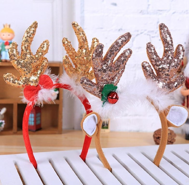 Grappige kerst hoorn voor op het hoofd met glinsterende rendierhorens.