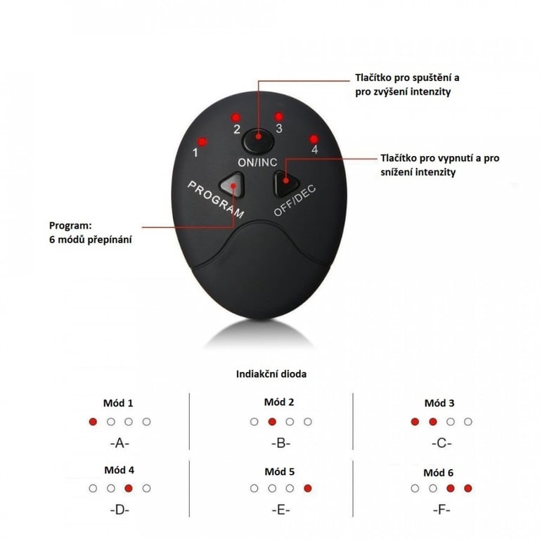 6 modi/programma's A-F (herkenbaar aan de diode – zie foto)