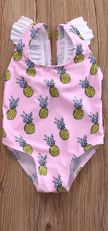 Meisjes ééndelige zwemkleding met ruffles en ananasprint