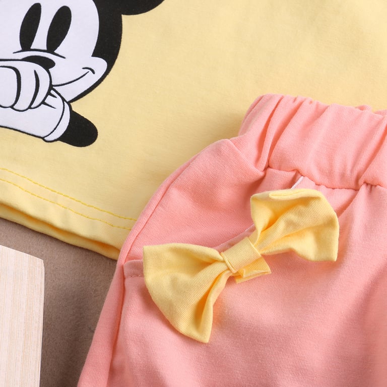 Meisjes schattige zomerset met Mickey Mouse en Minnie Mouse print – top + shorts