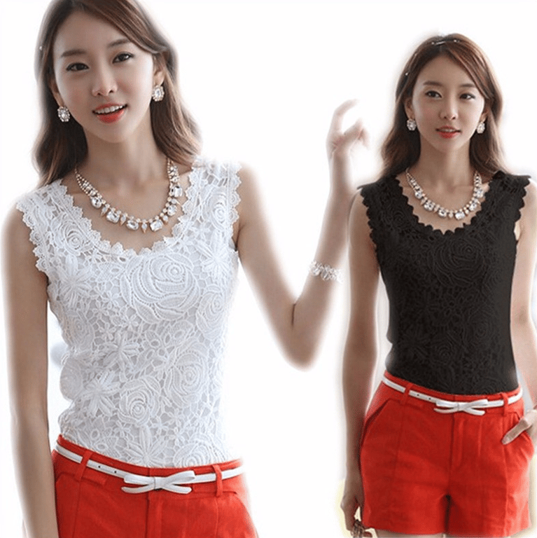 Dames mouwloze blouse. Gemaakt van prachtige bloemenkant. Ideaal voor de zomerperiode. Geschikt voor formele en informele evenementen.