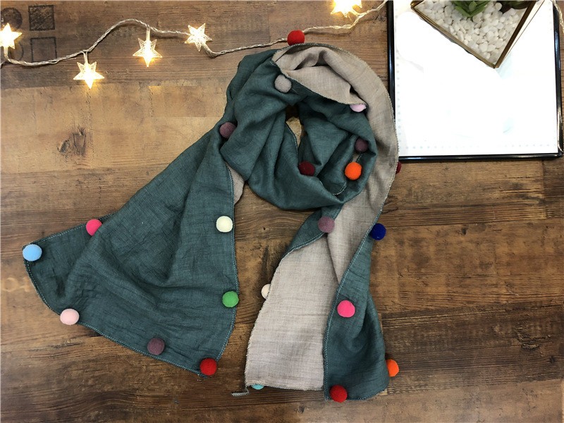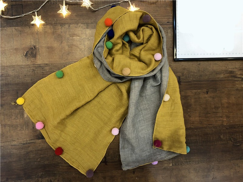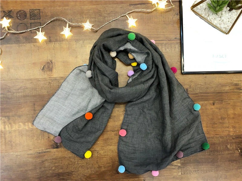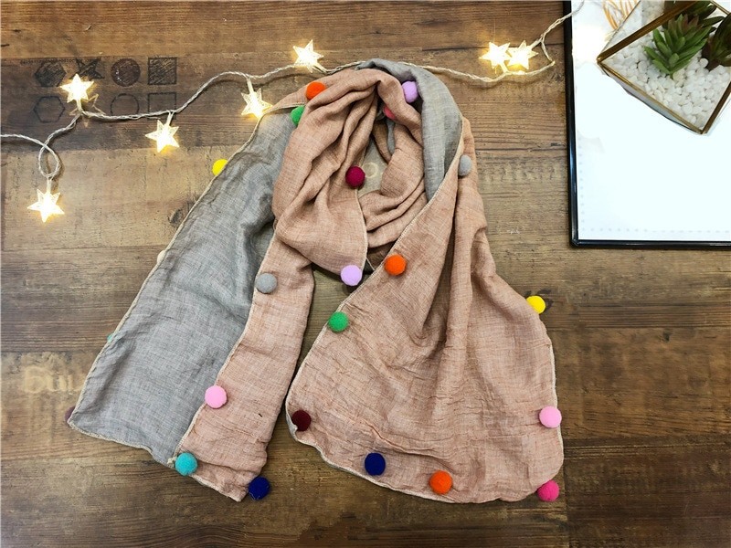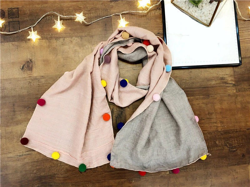 Deze prachtige sjaal versierd met kleine pompons zal elk kind blij maken.