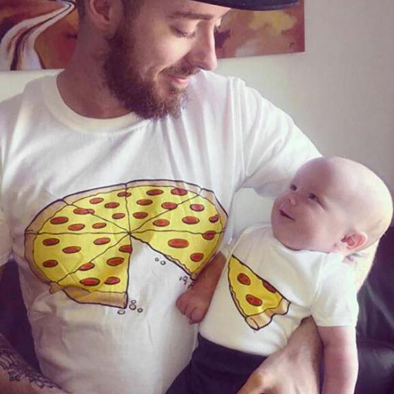 T-shirt voor papa en kind met een print van Pizza.