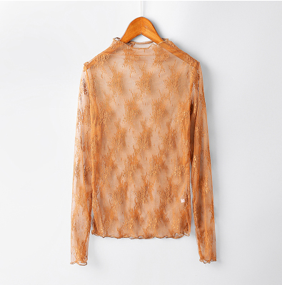 Dames transparante blouse van fijne kant. U kunt kiezen uit drie kleuren.