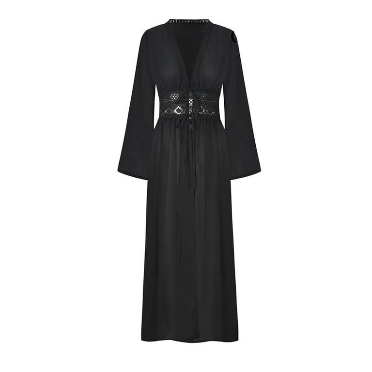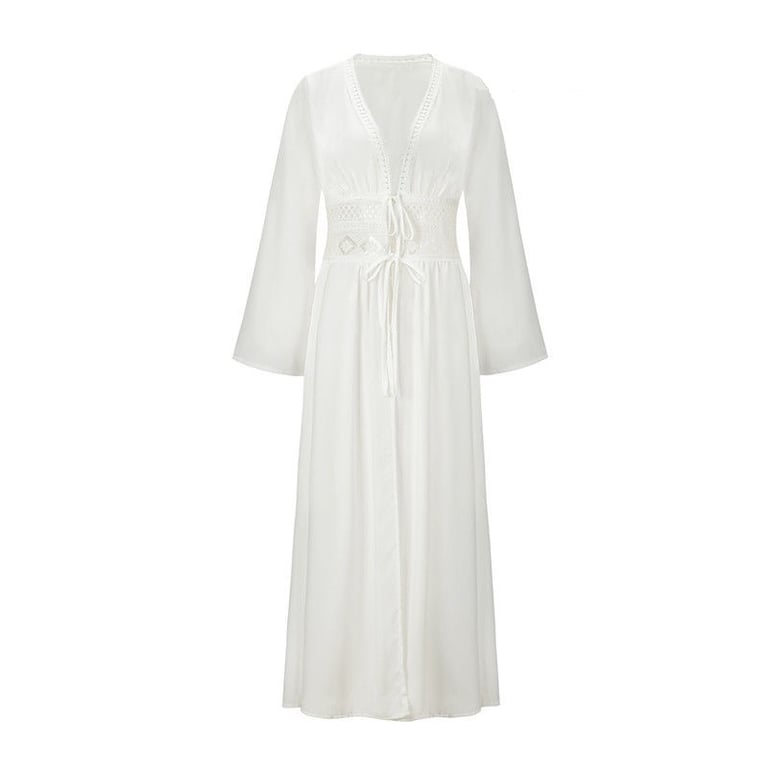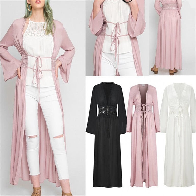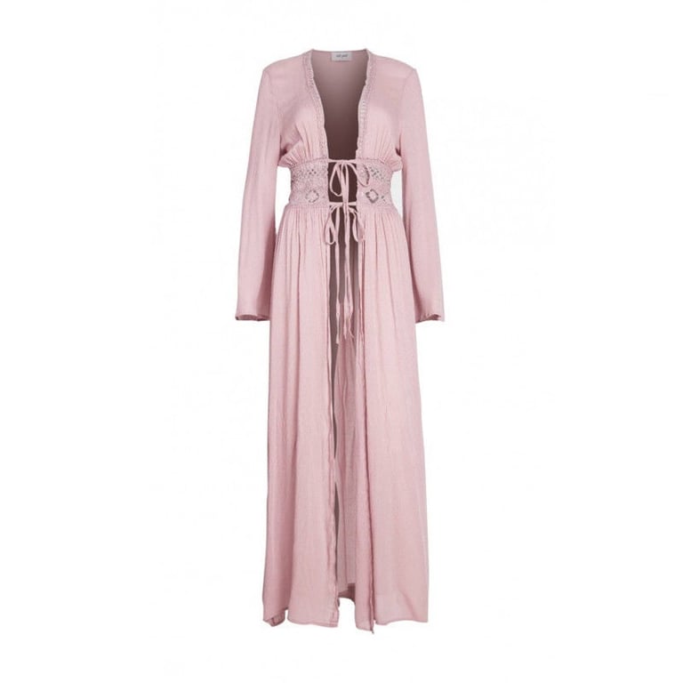 Het heeft lange losse mouwen en de totale lengte reikt tot de enkels.