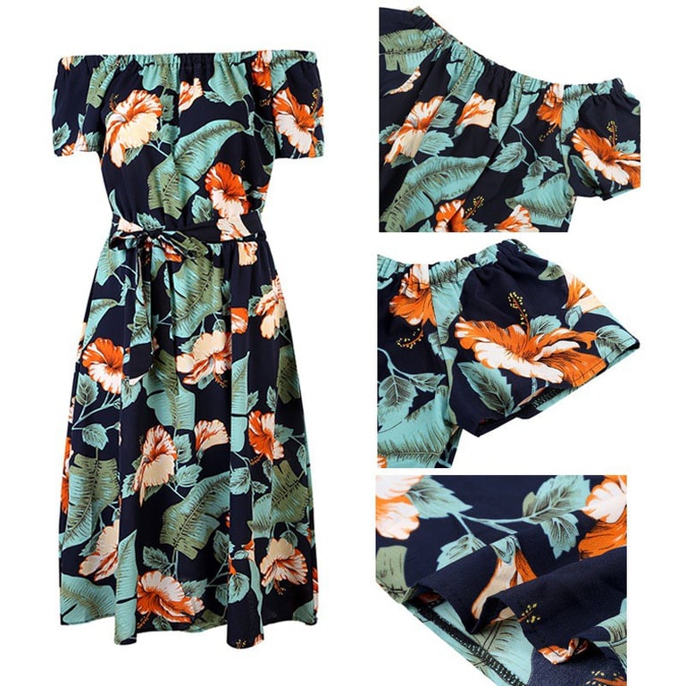 Bloemen zomerjurk met schouderbanden en een strik in de taille.