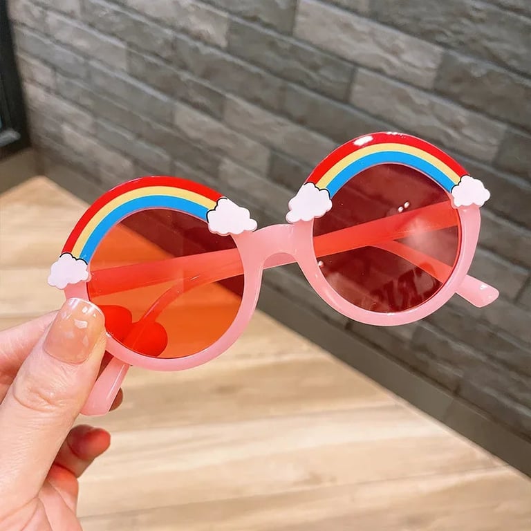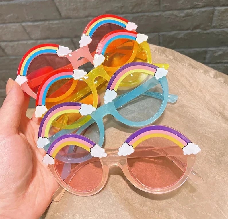 Kinderzonnebrillen met regenboog voor de zomer.