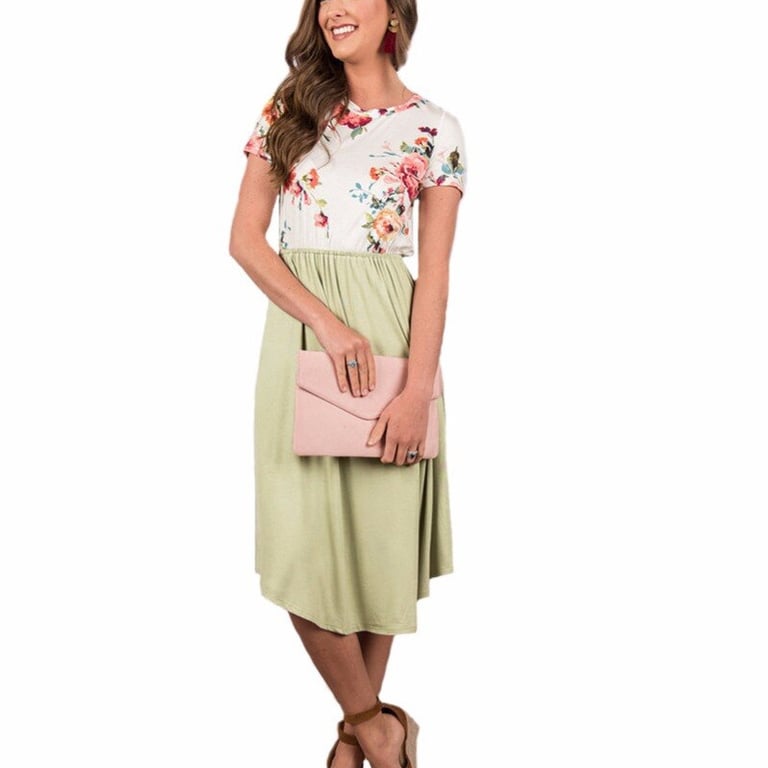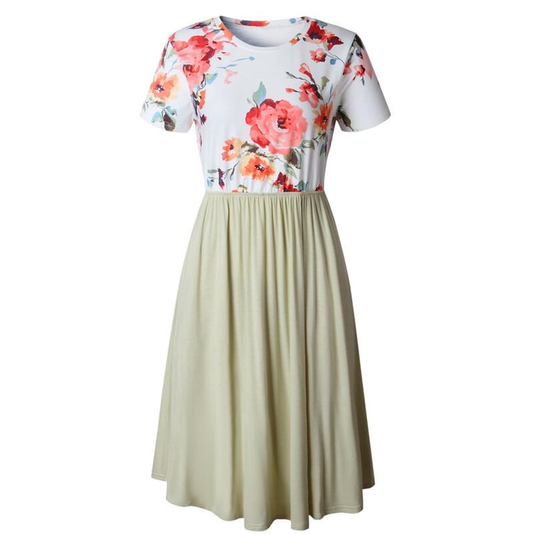 Comfortabele jurk in een aantrekkelijke snit met een lengte tot onder de knie en een bloemenprint op de borst. Winkel met ons zonder verzendkosten voor de meest stijlvolle stukken.