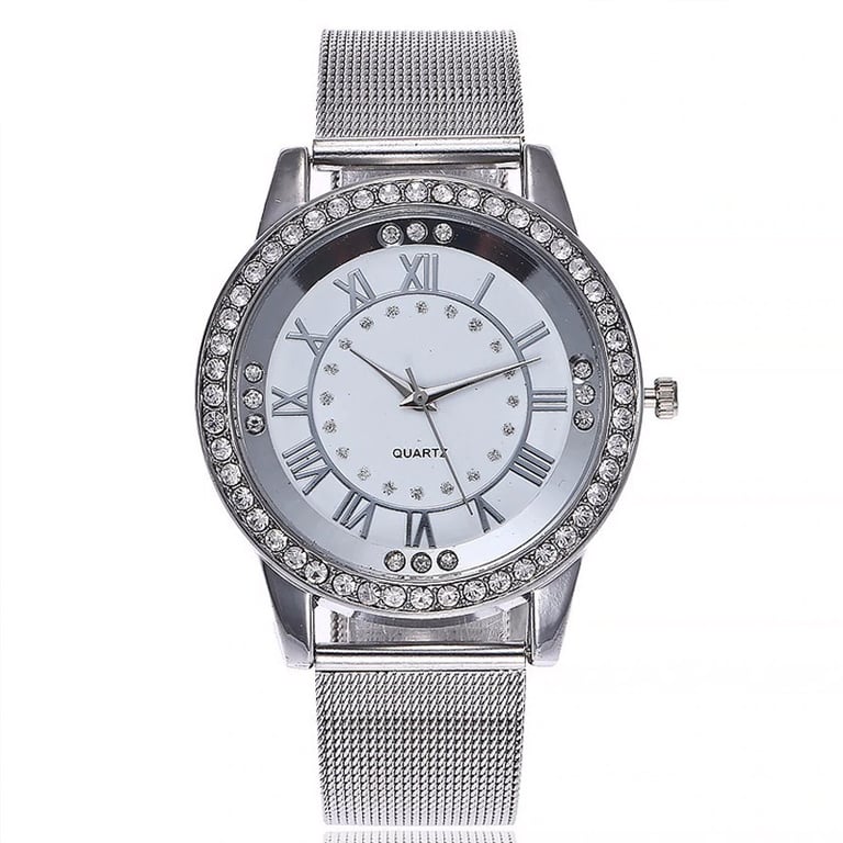 Luxueuze horloge met glanzend geslepen glas, wijzerplaat met Romeinse cijfers en metalen band. Maak uw zakelijke en sociale uitstraling compleet met dit elegante stuk.