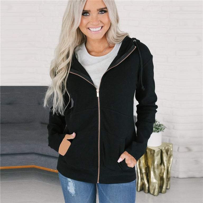 Dames hoodie met capuchon en koord. Rechte comfortabele pasvorm. Ritssluiting en twee zijzakken. Verkrijgbaar in meerdere kleuren.