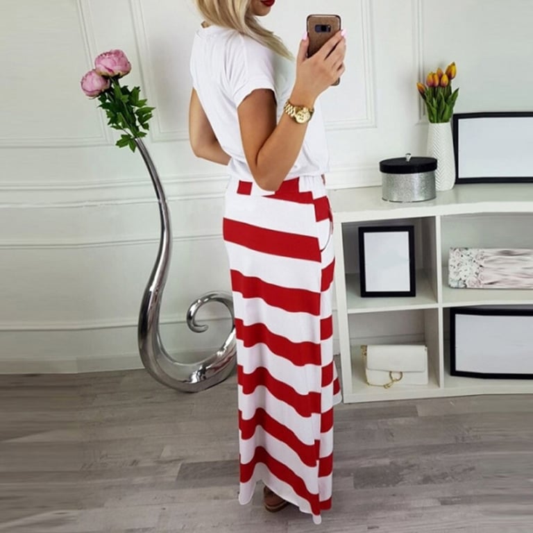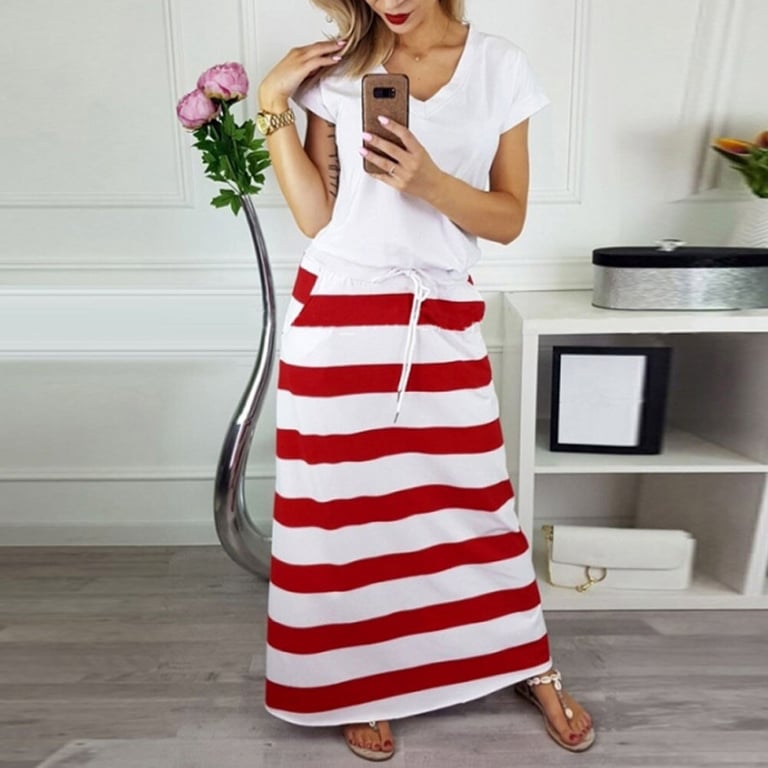 Dames lange joggingrok met elastische tailleband. Gestreept patroon. Vrije comfortabele snit. Verkrijgbaar in twee varianten.
