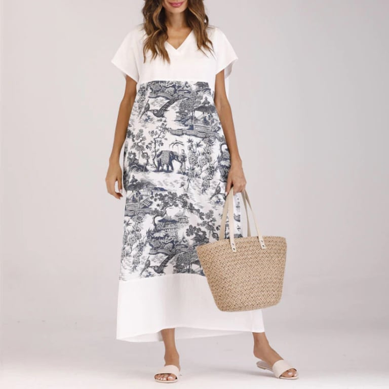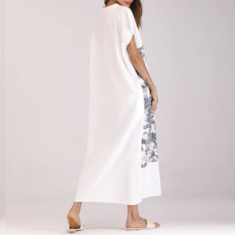 Zakelijke lange jurk voor het meest comfortabele gevoel om gekleed te zijn. In de zomermaanden zult u de luchtigheid van de snit waarderen en zult u zich gewoon goed voelen. Winkel slim met ons zonder verzendkosten.