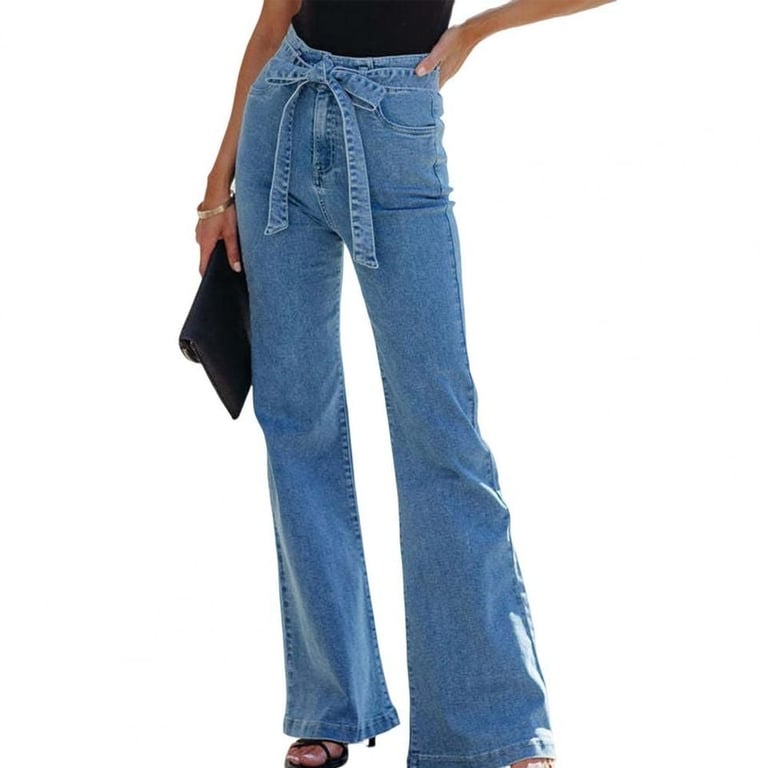 Dames flared jeans met een decoratieve riem.