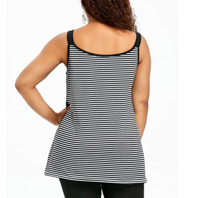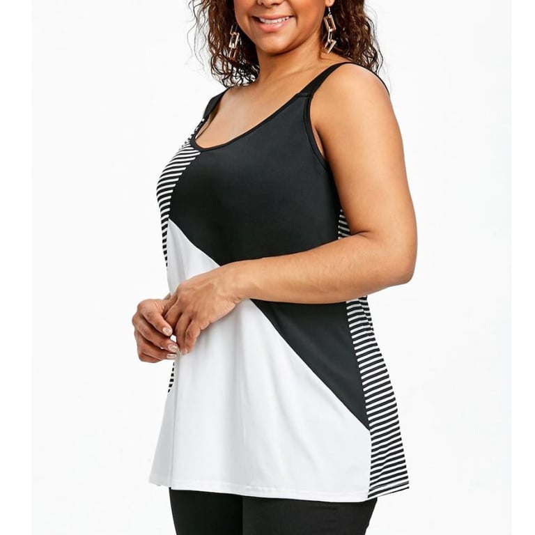 Dames plus size top met zwart-wit asymmetrisch patroon.