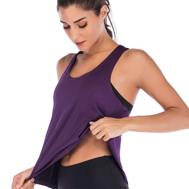 Dames sporttop met gekruiste bandjes op de rug en een knoopdetail. Ronde halslijn. Verkrijgbaar in meerdere kleuren.