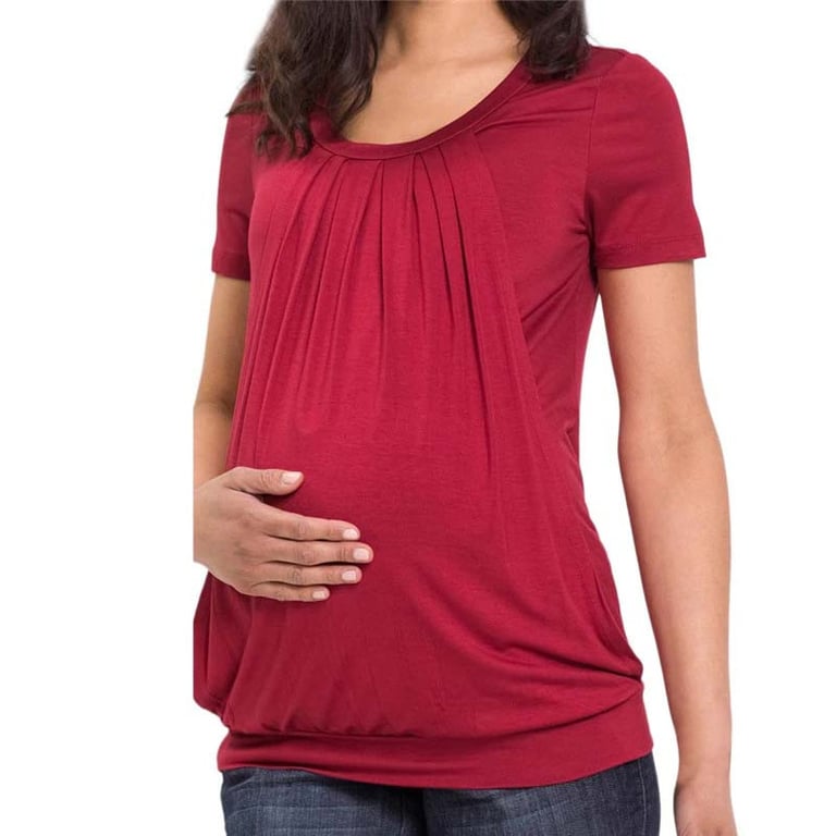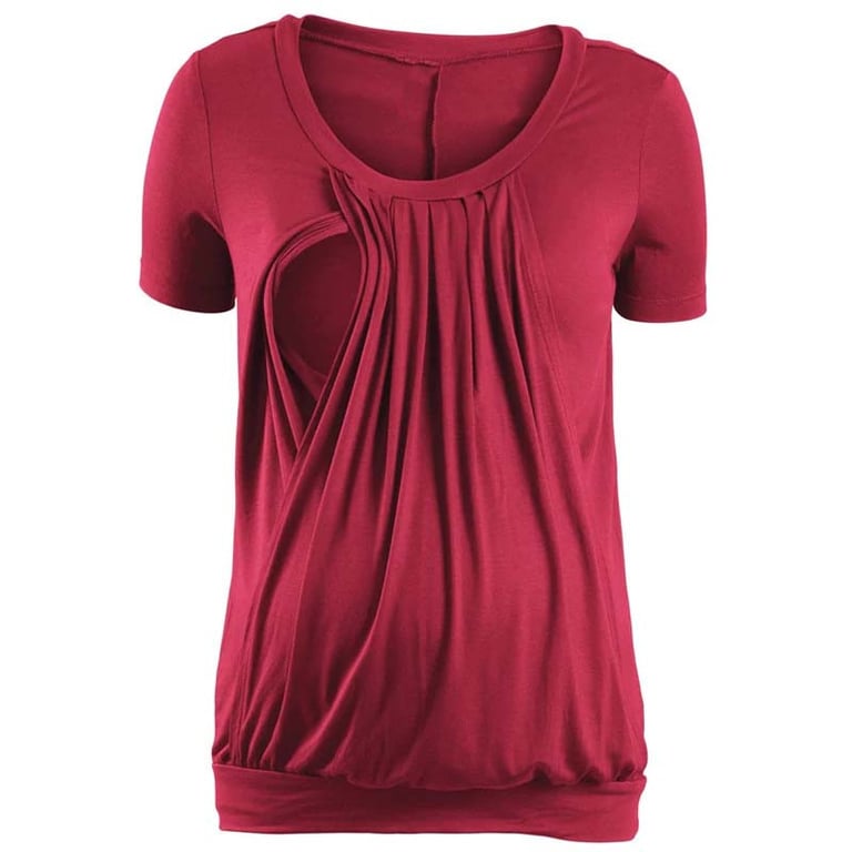 T-shirt die je comfortabel te dragen tijdens de zwangerschap en ook nuttig zal zijn na de geboorte van de baby, omdat het geschikt is voor borstvoeding. Je kunt eenvoudig een deel van het shirt opzij schuiven en het is niet nodig om je helemaal uit te kleden.