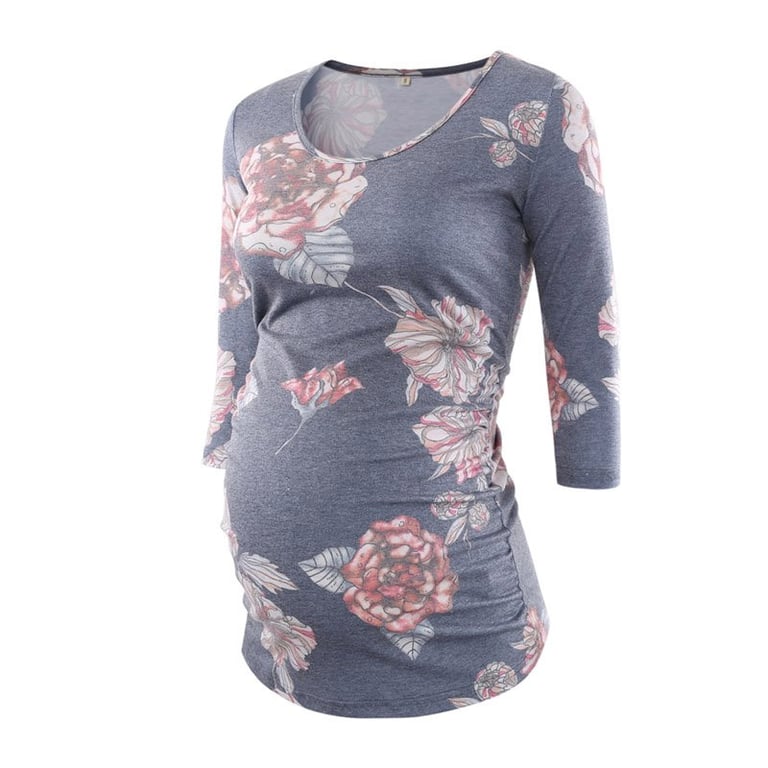 Dames zwangerschaps T-shirt met ronde hals. Het T-shirt heeft 3/4 mouwen, een comfortabele pasvorm en is losjes over de buik. Beschikbaar in vier varianten.