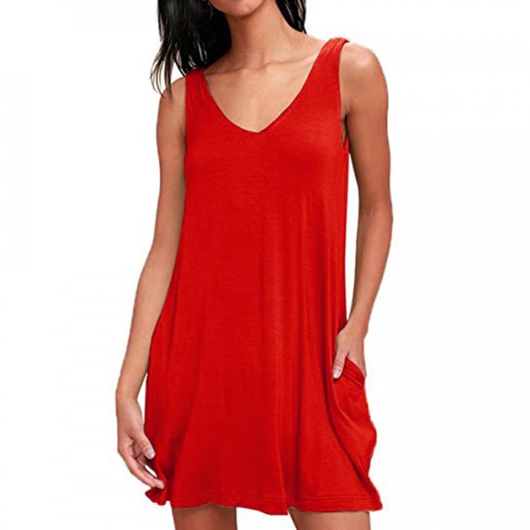 Damesjurk met spaghettibandjes. Losse korte snit met zijzakken en een V-hals. Verkrijgbaar in meerdere kleurvarianten.