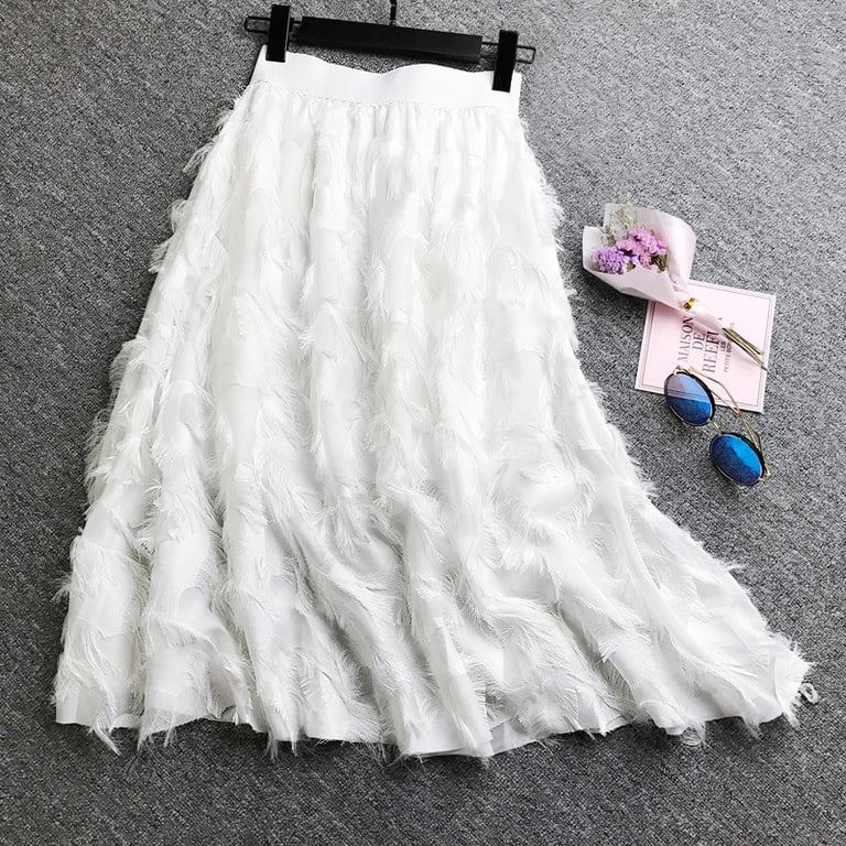 Stijlvolle rok met elegante veren over de hele snit. Elegante rok voor elke gelegenheid.