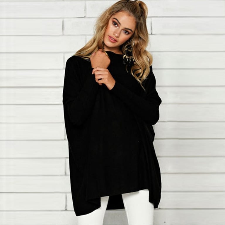 Dames lichte trui met lange mouwen. Vrije, verlengde oversized pasvorm. Ronde hals. Verkrijgbaar in meerdere kleurvarianten.