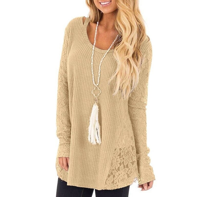 Damestrik met lange mouwen en ronde hals. Vrije snit met kantdecoratie. Verkrijgbaar in meerdere kleurvarianten.