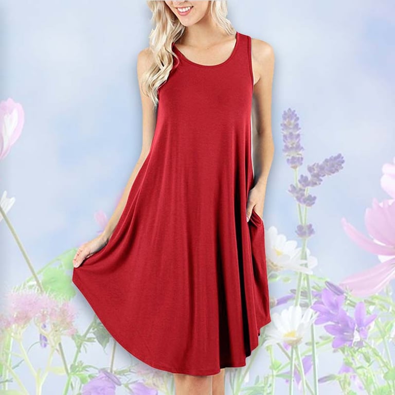 Dames eenvoudige jurk, ideaal voor zonnige lentedagen of voor hete zomers, geschikt voor het strand, de tuin en voor dagelijks gebruik.