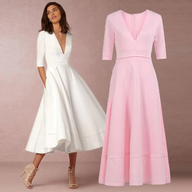 Lange jurk in Engelse stijl, ideaal voor elke elegante dame. In prachtige maten voldoet het aan de behoeften van bijna elke vrouw.