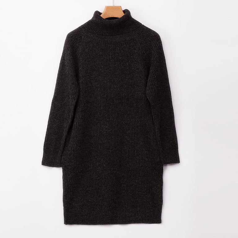 Herfst- en wintermodel van gebreide jurken voor een stijlvolle uitstraling. De knie-lange snit past goed bij een winterjas.