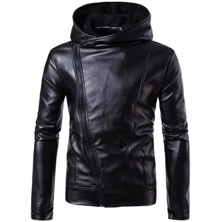 Stijlvolle jas met een glanzend zwart oppervlak. De aantrekkelijke snit met de zogenaamde 'biker' zal op elk mannenlichaam opvallen.